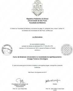 • Pós-Graduação lato sensu em Cirurgia Torácica Robótica, na Faculdade Israelita de Ciências da Saúde Albert Einstein - Hospital Albert Einstein (2021)