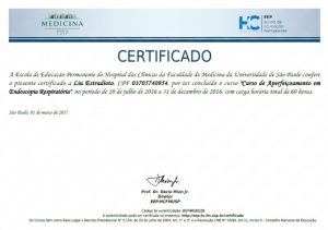 • Especialização (Residência Médica) em Endoscopia Respiratória – Broncoscopia Diagnóstica e Intervencionista, Hospital Universitário Cajuru (2018)